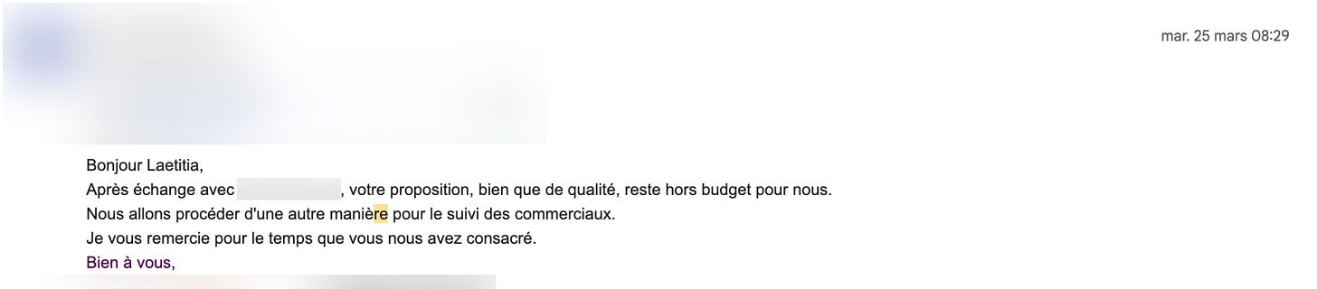 Et surtout parce que ce cas est typique de ce qu’on peut vivre lorsqu’on vend à des grosses structures : une opportunité mais un deal qui ne se fait pas pour des raisons qui ne sont pas toujours visibles au départ.